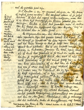 W.S. Landor is een 19e-eeuwsch schrijver, en ‘the prince of english prose-writers’. Het verhaal stuur ik je gelijk hiermee.* Ik had het apart willen uitgeven, maar dat is in dezen tijd onmogelijk, en Forum plaatst geen vertalingen. Landor is heel oud geworden, meen ik, anders zou hij haast een tijdgenoot zijn van Byron; ‘vrij’ is het verhaal dus in ieder geval.