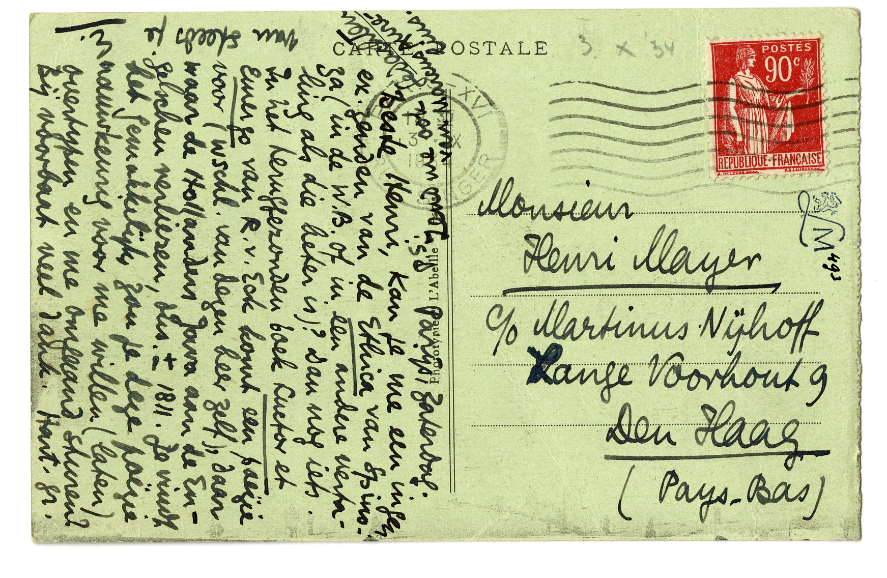 Beste Henri, Kan je me een ingen. ex. zenden van de Ethica van Spinoza (in de W.B. of in een andere vertaling als die beter is)? Dan nog iets. In het teruggezonden boek Luctor et Emergo van R.v. Eck komt een poëzie voor (wschl. van dezen heer zelf), daar waar de Hollanders Java aan de Engelschen verliezen, dus ± 1811. Je vindt het gemakkelijk, zou je deze poëzie nauwkeurig voor me willen (laten) overtypen en me omgaand sturen? Bij voorbaat veel dank. Hart. gr. van steeds je