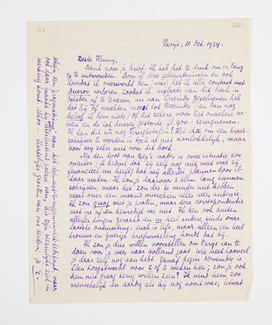 Ik zou je dus willen voorstellen om Parijs aan te doen voor je weer naar Holland gaat. Wie weet hoeveel je daar zelf nog aan hebt. Vanaf begin November is Slau hoogstwschl. voor 2 of 3 weken hier; zou je ook hem niet graag terug willen zien? Ik vind hem zoo menschelijk en aardig als hij nog nooit was; ietwat mat (wie zou dat niet worden in dat abrutisseerende Tanger), maar toch flink; en voor ons was hij als gastheer alleraardigst. Bep, die hem alleen uit verhalen kende, heeft een reëele sympathie voor hem opgevat. Ik zou zeggen: zie dat je begin Nov. ook hier komt; misschien komen ook Jan Greshoff en Menno dan voor een paar dagen over en kunnen we van allerlei met elkaar uitwisselen. Over een jaar is het misschien gasoorlog en zijn we allemaal als insecten uitgeroeid.