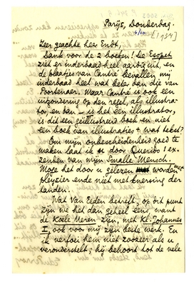 Wat Van Eeden betreft, op dit punt zijn we het dan geheel eens, want de Koele Meren zijn, met Kl. Johannes I, ook voor mij zijn beste werk. En ik verfoei hem niet zoozeer als u veronderstelt; hij behoort tot de vele auteurs die ik apprecieeren kan zonder veel aan ze te denken.