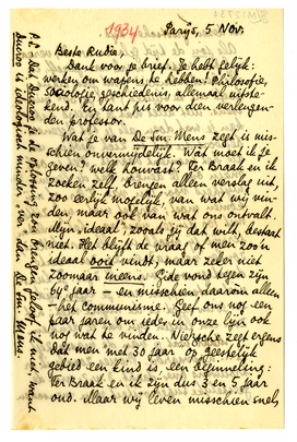 Dank voor je brief. Je hebt gelijk: werken om wapens te hebben! Philosofie, sociologie, geschiedenis, allemaal uitstekend. En tant pis voor dien verleugenden professor.3409