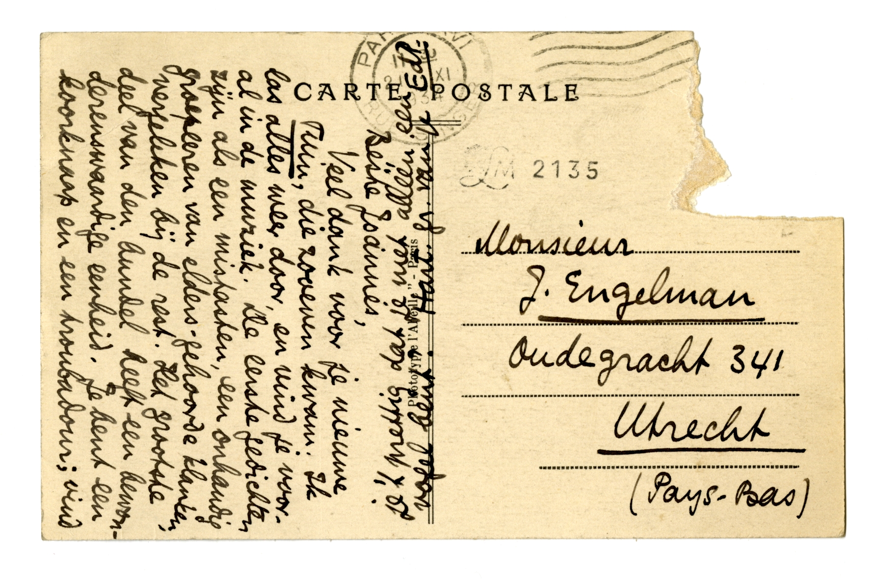 Veel dank voor je nieuwe Tuin, die zooeven kwam. Ik las alles weer door, en vind je vooral in de muziek. De eerste gedichten zijn als een mistasten, een onhandig groepeeren van elders-gehoorde klanken, vergeleken bij de rest. Het grootste deel van den bundel heeft een bewonderenswaardige eenheid. Je bent een koorknaap en een troubadour; vind je 't prettig dat je niet alléén een vogel bent?3453 Hart. gr. van je