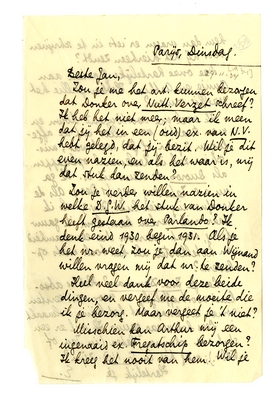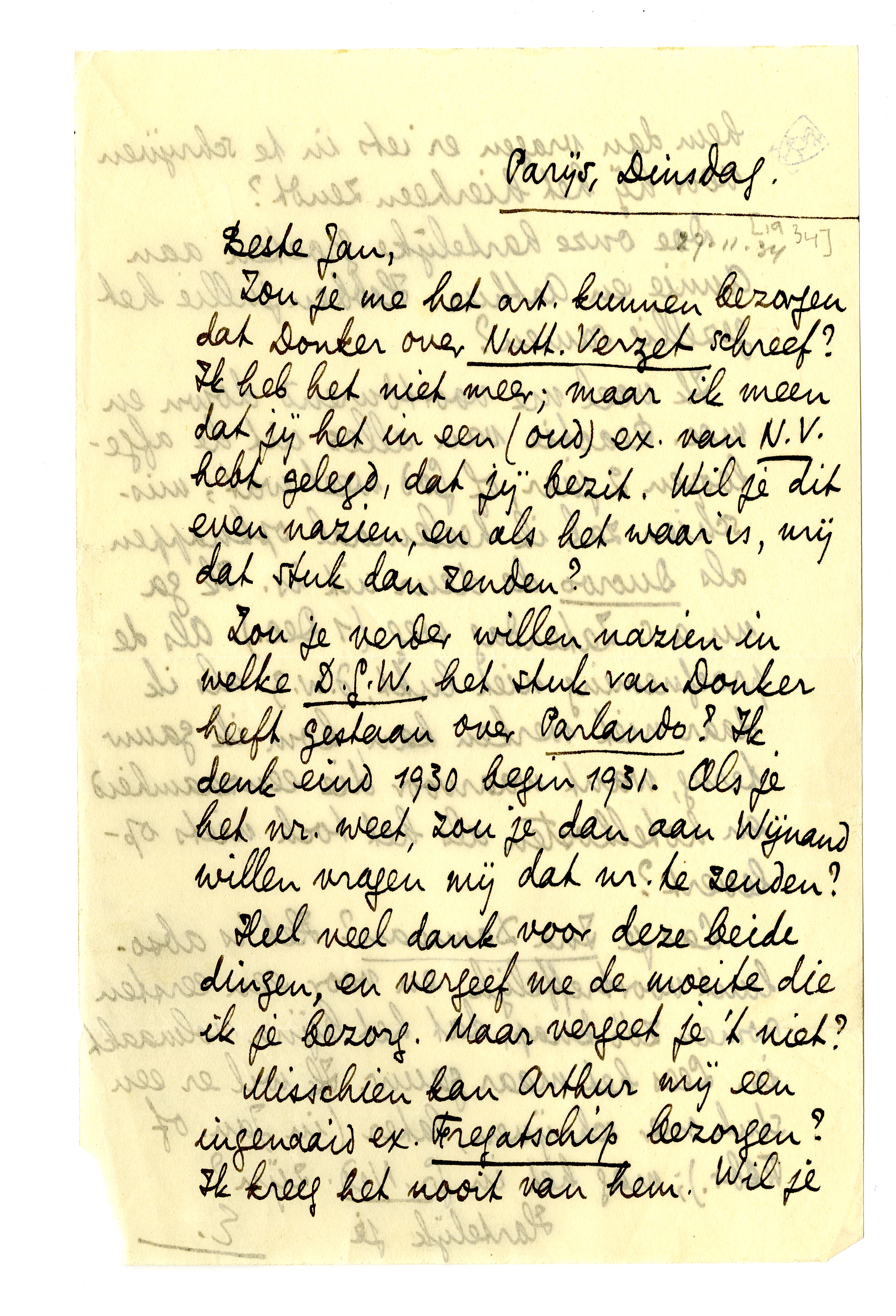 Zou je verder willen nazien in welke D.G.W. het stuk van Donker heeft gestaan over Parlando?3460 Ik denk eind 1930 begin 1931. Als je het nr. weet, zou je dan aan Wijnand willen vragen mij dat nr. te zenden?