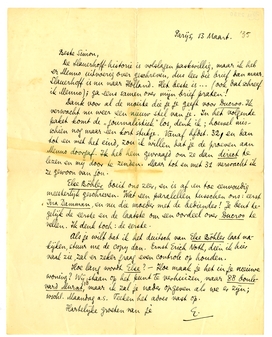 De Slauerhoff-historie3582 is volslagen paskwillig, maar ik heb er Menno uitvoerig over geschreven, dus lees die brief dan maar.3583 Slauerhoff is nu naar Holland. Het beste is (ook dat schreef ik Menno); ga eens samen over mijn brief praten!