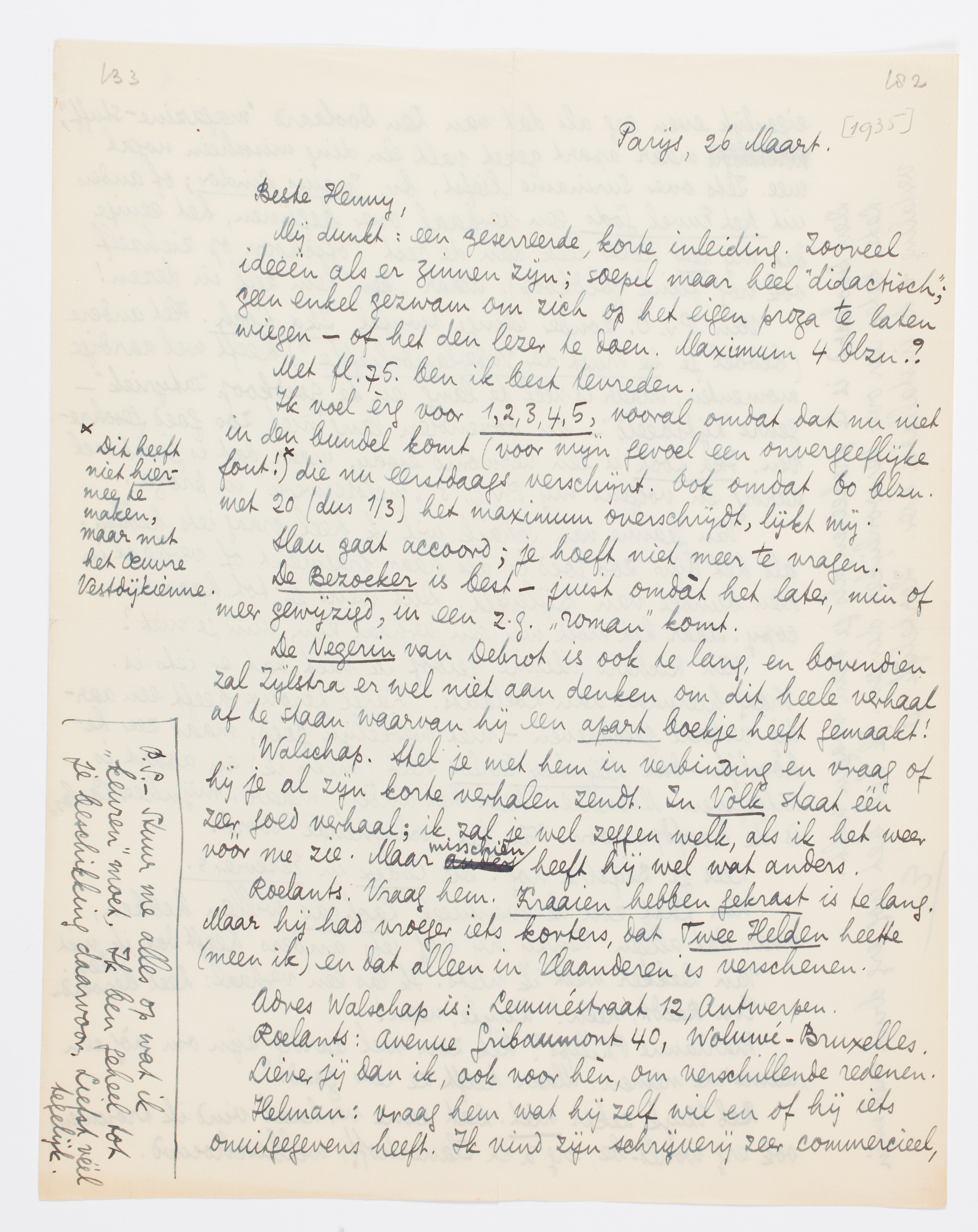 P.S. - Stuur me alles op wat ik ‘keuren’ moet. Ik ben geheel tot je beschikking daarvoor. Liefst véél tegelijk.