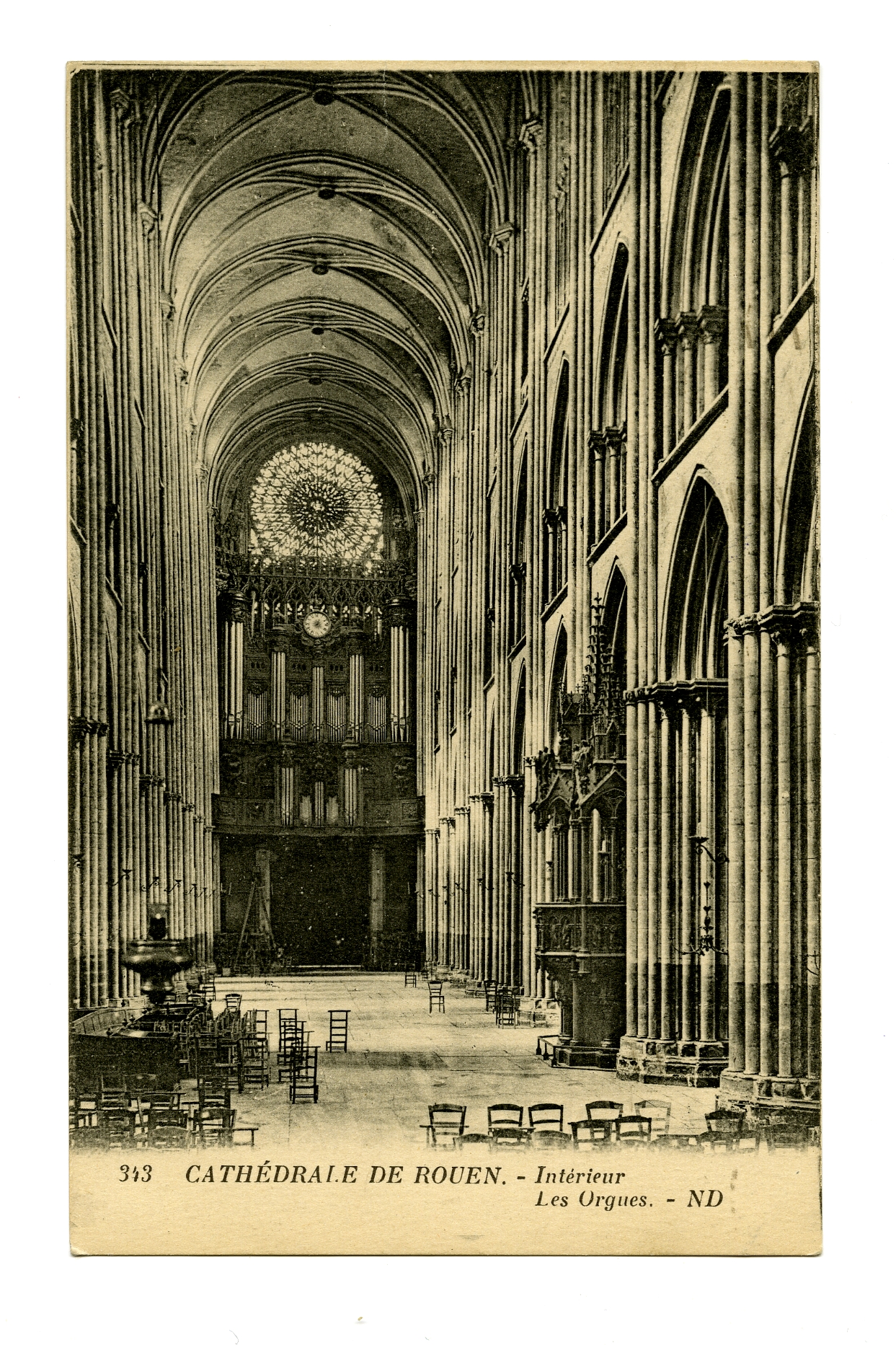 3683Prentbriefkaart: foto van het middenschip van de kathedraal van Rouen.