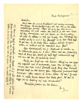 Hierbij een brief van die heeren. Schrijf me zoo spoedig mogelijk wat ik antwoorden moet. Kan ik zeggen: ‘ik verneem dat mijn vriend Greshoff sinds lang deze kroniek gevraagd heeft en tot dusver geen definitief antwoord heeft ontvangen; reden waarom ik ervan afzie’ of zoo? Je weet beter in welke termen zooiets het beste gaat. Of zal ik zeggen dat de betaling mij niet convenieert?