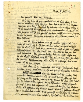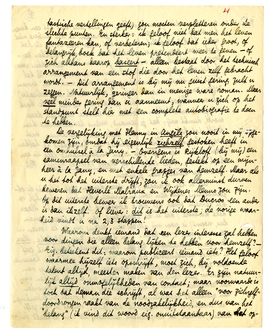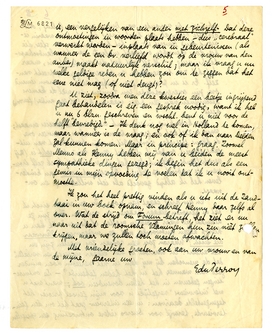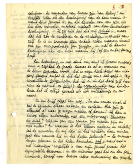 U ziet, zoodra men deze kwesties een beetje ingrijpend gaat behandelen is eig. een gesprek noodig, want ik heb u nu 6 blzn. geschreven en wschl. bent u niet voor de helft ‘bevredigd’. - Ik denk nog wel in Holland te komen, maar wanneer is de vraag; en ook of ik dan naar Delden zal kunnen komen. Maar in principe: graag. Zoo-wel Menno als Henny hebben mij van u beiden de meest sympathieke dingen gezegd; ik begin het dus als een gemis in mijn opvoeding te voelen dat ik u nooit ontmoette.