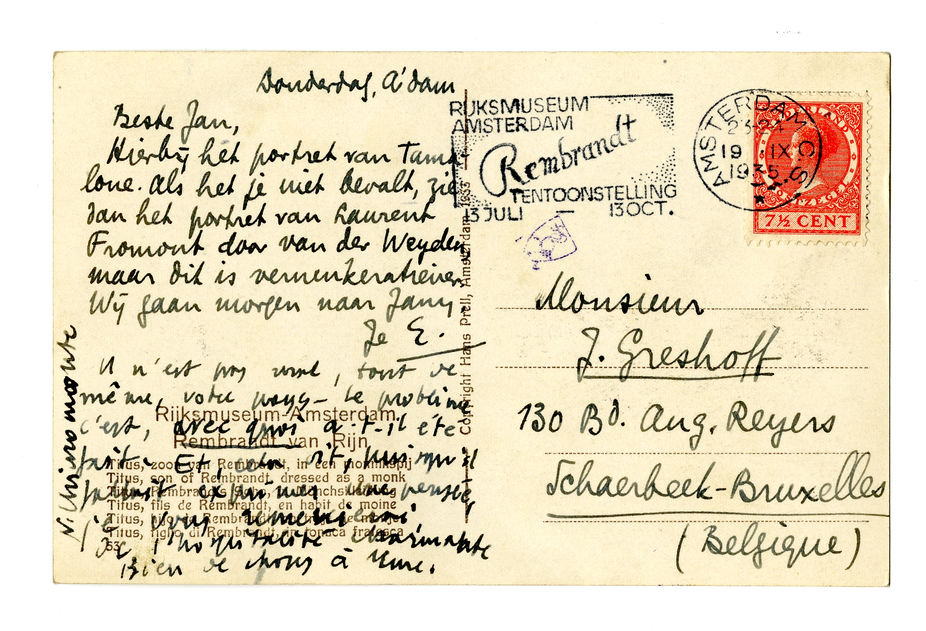 Hierbij het portret van Tamalone. Als het je niet bevalt, zie dan het portret van Laurent Fromont door van der Weyden,3873 maar dit is verneukeratiever. Wij gaan morgen naar Jany.