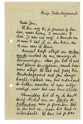 Brussel heeft altijd een verlammende invloed op me, vanwege de herinneringen. Maar jou heb ik met veel plezier teruggezien; zooals trouwens altijd. Ik had ook graag dien Donderdagavond met jou doorgebracht, inplaats van dat onderhoud te hebben waartoe ik was uitgenoodigd, maar dat was dure plicht.