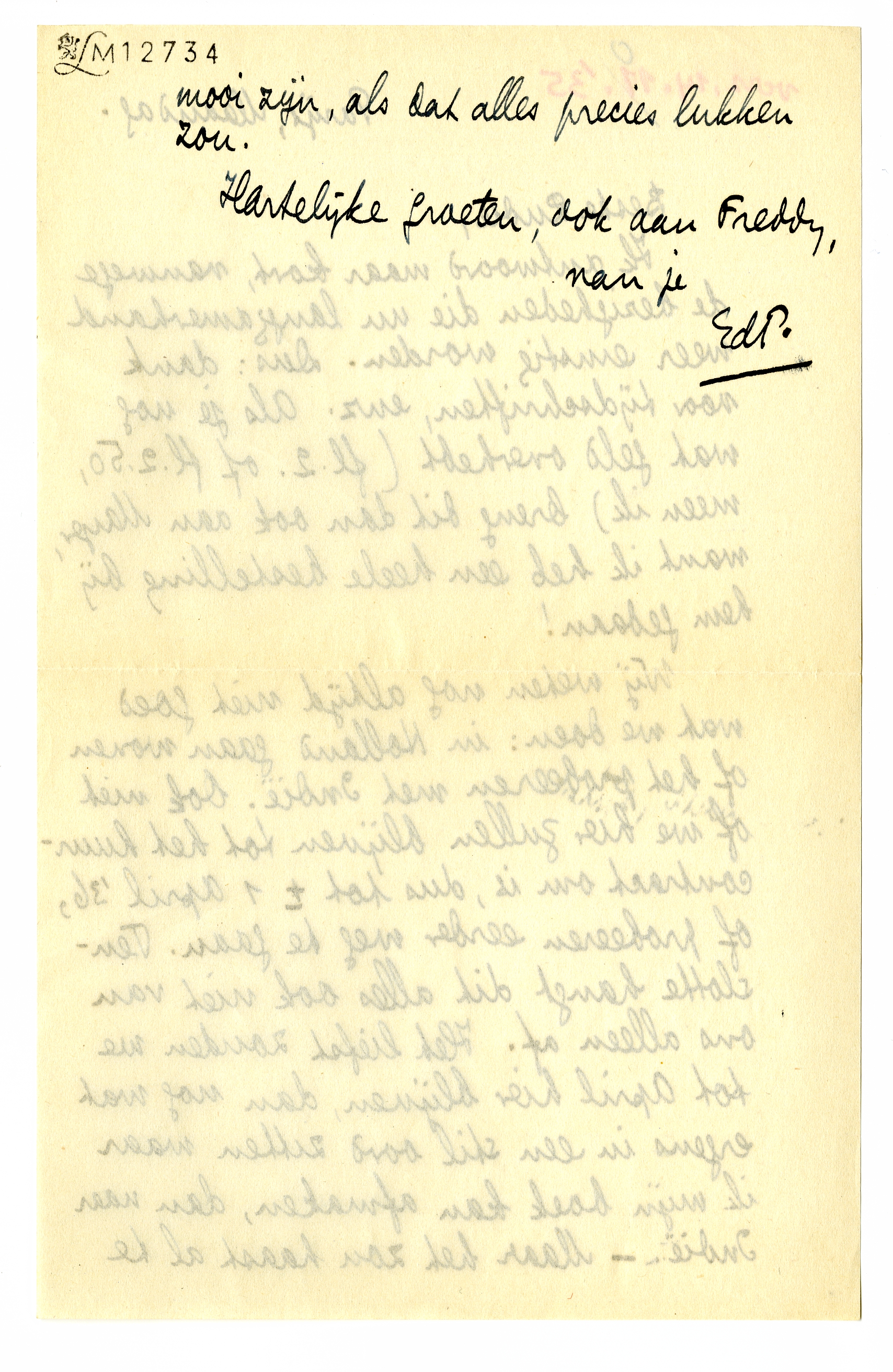 Ik antwoord maar kort, vanwege de bezigheden die nu langzamerhand weer ernstig worden. Dus: dank voor tijdschriften, enz. Als je nog wat geld overhebt (fl. 2. of fl. 2.50, meen ik) breng dit dan ook aan Mayer, want ik heb een heele bestelling bij hem gedaan!
