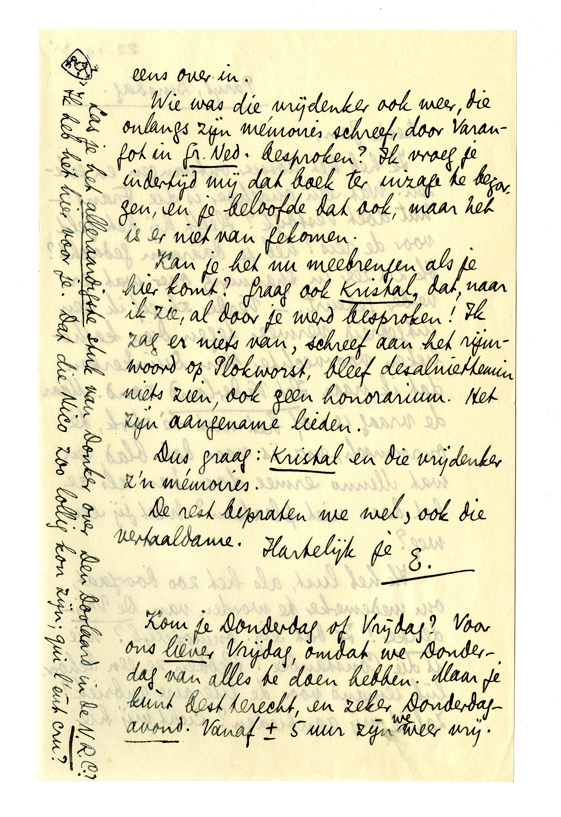 Wie was die vrijdenker ook weer, die onlangs zijn mémoires schreef, door Varangot in Gr. Ned. besproken?3894 Ik vroeg je indertijd mij dat boek ter inzage te bezorgen, en je beloofde dat ook, maar het is er niet van gekomen.