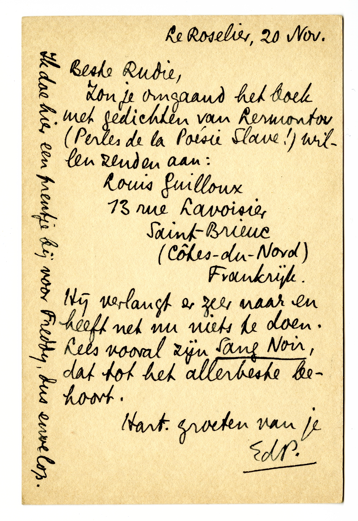 Zou je omgaand het boek met gedichten van Lermontov (Perles de la Poésie Slave!)3936 willen zenden aan: