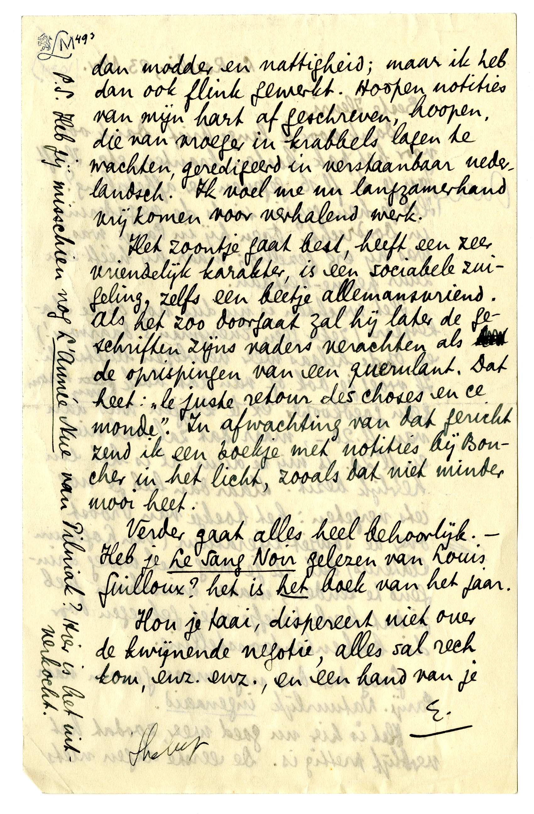 Verder gaat alles heel behoorlijk. - Heb je Le Sang Noir gelezen van Louis Guilloux? het is het boek van het jaar.