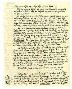 Ik laat het hierbij. Die uitweiding over politiek heeft je misschien knap verveeld. Wij gaan 2 Dec. naar Parijs terug, d.i.a.s. Maandag. Ik heb daar alweer van alles en nog wat te doen, en Bep ook. - Het is jammer dat je niet hier kwam, maar inderdaad, als we in Aix wonen, moet je komen logeeren. Bep is absoluut gesteld op een logeerka-mer, al is het een kleintje, en stelt zich van een gast-zijn van jou veel voor. In Parijs kom je vooreerst zeker niet?