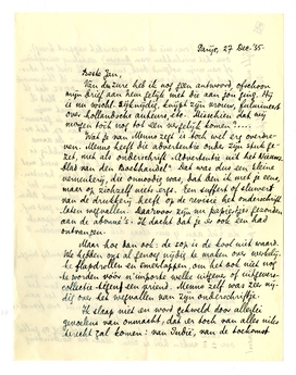 Van den zure heb ik nog geen antwoord, ofschoon mijn brief aan hem gelijk met die aan jou ging. Hij is nu wschl. sijknijdig, knijpt zijn vrouw, fulmineert over hollandsche auteurs, etc. Misschien dat wij morgen tòch nog tot een vergelijk komen?....