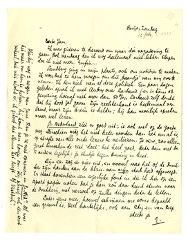 Gr. Nederland ziet er goed uit; is ook wel op de goede weg. Misschien màg het niet beter worden dan het nu al is, op straffe van alle oude lezers te verliezen. Je vers, zoo alleen gezet tusschen de rest ‘doet’ het heel goed, beter dan met de 2 andere tegelijk; je stukje tegen Buning is best.4037