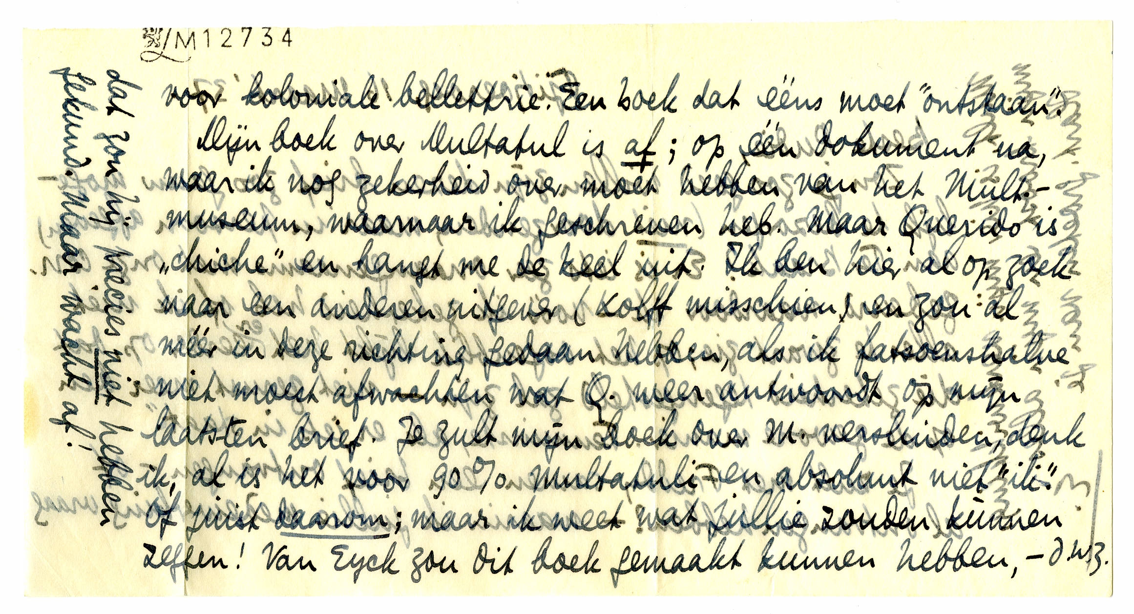 Je zult met Freddy samen een brief4533 ontvangen - of al ontvangen hebben? - waarin ik jullie medewerking vraag voor koloniale belletrie. Een boek dat ééns moet ‘ontstaan’.