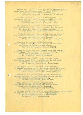4789Tekst geschreven op een getypte kopie van het 27 strofen tellende gedicht Het menschlijk leeven van W. van Haren (Amsterdam 1760).