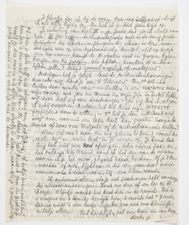 Overigens heb je gelijk: laat de ‘cultuurbeschouwingen’ desnoods weg, houd je aan 't ‘literaire’. Ten 1e schrikt Lubbes daar minder van - en Lubbes is een MACHTIG man, mijn corresp. met Jan en Menno èn mijn zijn in Indië hebben mij daar heel erg van doordrongen: zóo erg, dat ik, al zou ik erbij crepeeren, besloten heb dit beestje mijn UITERSTE koppigheid voor te zetten; - 2o heb je dan inderdaad wat ‘stof’ over, waaruit een later boek kan groeien. Essay à la Menno of zoo; over Nietzsche of de nietzscheaansche Kultur?4812