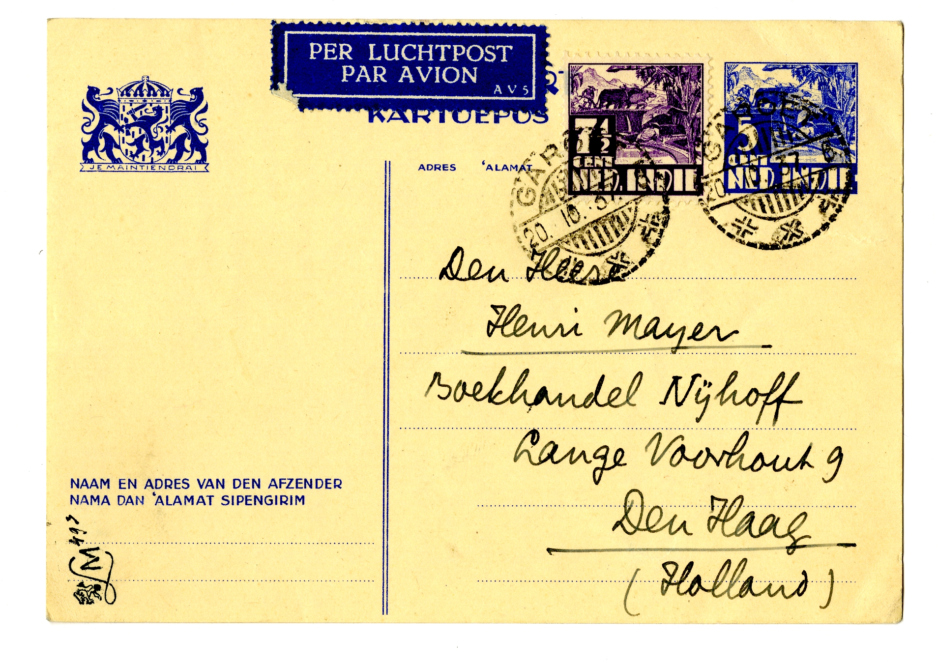 Graag antwoord per luchtpost, maar doe het gewoon op een briefkaart, dat spaart kosten uit.