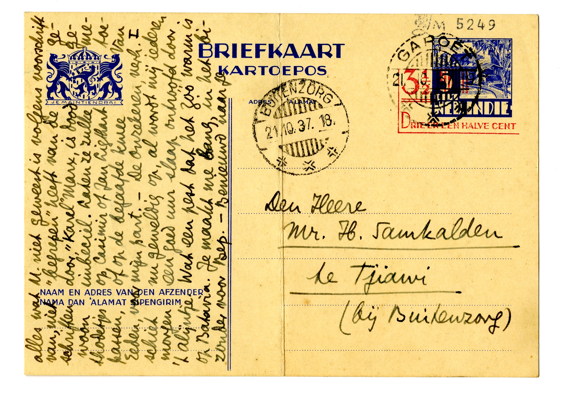 Je hebt gelijk: ik ben een kreng, dat ik niet genoeg in aanmerking neem hoe druk je 't hebben kunt. In ieder geval dank voor brief en boek, en bij voorbaat nu al voor de inlichting over de ‘bijltjes’. Ik had graag die Mul-discussie mee helpen afwikkelen! Tusschen haakjes, ik sprak eens met Romein en zijn vrouw over M., en ofschoon we er maar een paar zinnetjes aan gewijd hebben, was hun heele houding zuiver. Wat Romein trouwens over hem zegt in de Lage Landen is - voor een halve bladzij - uitnemend. Maar Romein is een marxist die al groot genoeg is om zich een zekere soepelheid te permitteeren, ook tegenover ‘politici zonder partij’, zooals M. essentieel was. Dan kan je praten. Met kleine kampioenen voor marxistische verstarring kan je alleen ‘moeren’; met dien verstande dat de verstarde man uitgemoerd verdient te worden. Zwijgen of moeren, praten is daar onmogelijk. Een klachtenlijstje over alles wat M. niet geweest is volgens voorschrift van, niet ‘begrepen’ heeft van de geschriften door ‘Karel’ Marx, is doodgewoon imbeciel. Laten ze zulke methodetjes op Casimir of Jan Ligthart toepassen, of op de begaafde kwee Van Eeden, voor mijn part. - De Onzekeren, verh. I schiet nu geweldig op, al wordt mij iederen morgen een goed uur slaap ontroofd door 't Alijntje. Wat een pest dat het zóó warm is op Batavia. Je maakt me bang, in het bijzonder voor Bep. - Benieuwd naar je artikel; over een tijdje schrijf ik wel weer. Een student, Gomperts, schreef in Propria Cures4957 uitnemend over Ter Braak. Wil je 't lezen? Ik zend je spoedig G.N. ook. Hart. gr. van je
