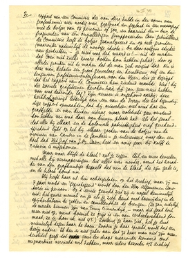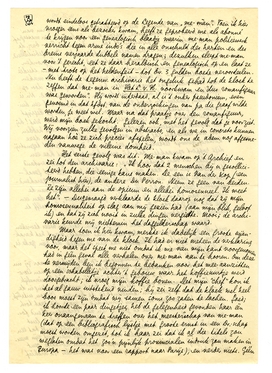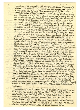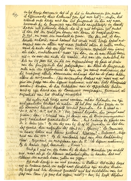 Sindsdien zijn de 2 andere dames vriendelijk tegen mij geworden. Zij drinken géén koffie meer met de kloek. En let wel, zij waren de eenigen die, oogenschijnlijk althans, met de kloek bevriend waren, want het ‘mindere personeel’ verfoeit haar van den eersten man tot den laatste. Daarom die opmerking van mij die jij niet begreep; mijn hart was daar vol van en vloeide er dus van over, op den dag dat het complete archief tegen de kloek samenvloeide.