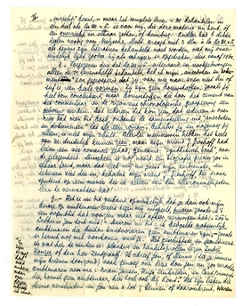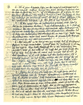 Nog iets: ik herhaal mijn verzoek om géén nrs. van H. en W. af te bedelen of met Sioux-slimheden te veroveren, en ik voeg er nog eens bij wat je ook alweer interpreteerde in mijn nadeel: voornl. om jouwentwil. Je Lubbessen en kruieniers van uitgevers zouden je 10 × moeten danken om wat je voor Gr. Ned. deed, en op zùlke wenschen van je (althans) vliegen, inpl. van je te behandelen zooals in de ambtenarij hier een kommies behandeld wordt - als hij geen reden geeft tot tevredenheid!