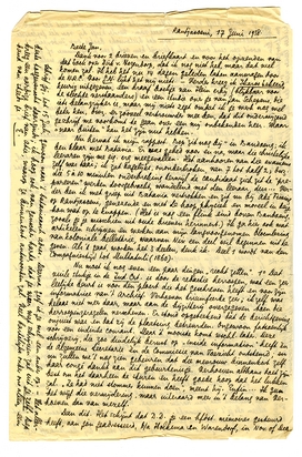 Schrijf jij, tot 15 Juli, gewoon naar 't bataviaasch adres. Daarna geef ik je wel een ander op. - Het allerbeste toegewenscht daarginds; ik hoop ook, van ganscher harte, dat je weer wat schrijven zal uit je zelf. Bep kreeg een aardige brief van Atie, waarop ze binnenkort antwoorden zal. Veel hartelijks onder ons allen, een hand van steeds je