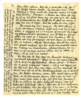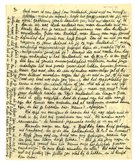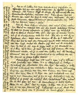 Ziezoo; nu weet je weer iets. Uit Bandoeng hoor je weer wat van onze verdere levensgevallen. Schrijf hoe je Brussel teruggevonden hebt en overleef den slag van Van der Veen's weggaan omderwille van Van der Veen's glorierijk lot. Mag ik ook wat doen voor Werk en dat literaire bijblad, of is 't eerste te ‘jong’ en het tweede te zeer als het verdere Vaderland - (angst voor stukken ‘die eig. in tijdschriften hooren’, terwijl je ze goddorie al zoo plat maakte als de mevrouw-van-Mensendieck het zich maar wenschen kon)? - In dat geval zit ik alweer in m'n hoek.