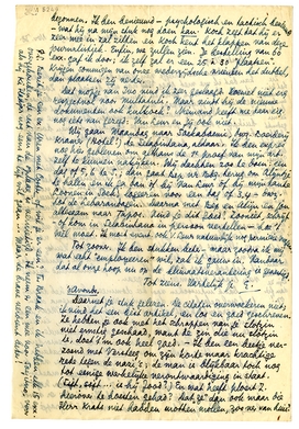 Ik ben benieuwd naar je artikel, vanavond, en zal daarover hier nog wat bijschrijven. Dat Versteeg dat zinnetje liet schrappen omdat deze zaak hen niet aanging, is teekenend. Ik heb voor hem en de zijnen - vriend Ritman inbegrepen - ook nog een smakelijk zinnetje gezet in mijn artikel. En eventueel zal ik mij op dit punt nog nader verklaren. Ik ben leverancier van een litt. kroniek voor die lieden, niet alleen voor hun gevoel, maar ook voor het mijne; ik ben dus ook van mijn kant volkomen vrij. Jij hebt au fond toch altijd nog iets meer illuzies omtrent deze lamstralen (Van Heutsz noemde dit nu ‘kerels om tegen te pissen’) dan ik. Vandaar dat ik het ook maar beter achtte om op je boudeerend epistel van laatst niet meer in te gaan.