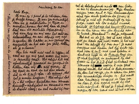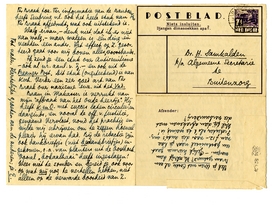 Bram in Makasser is verrukt van mijn ‘afbraak van het oude heer-tje’. Hij heeft K. en O. met succes laten circuleeren daarginds, en vooral de off v. justitie, genaamd Vervloet,5702 vond het prachtig en wilde mij schrijven om te zeggen hoeveel plezier hij ervan had. Bij de redactie zijn ook dankbriefjes (niet bedankbriefjes) ingekomen, o.a. van planters uit de Oosthoek. Vooral ‘bokaalhaai’ heeft ingeslagen! Wees niet te somber en bereid je ook voor op wat wij nog te vertellen hebben, niet alleen op de verwarde boosheid van Z.