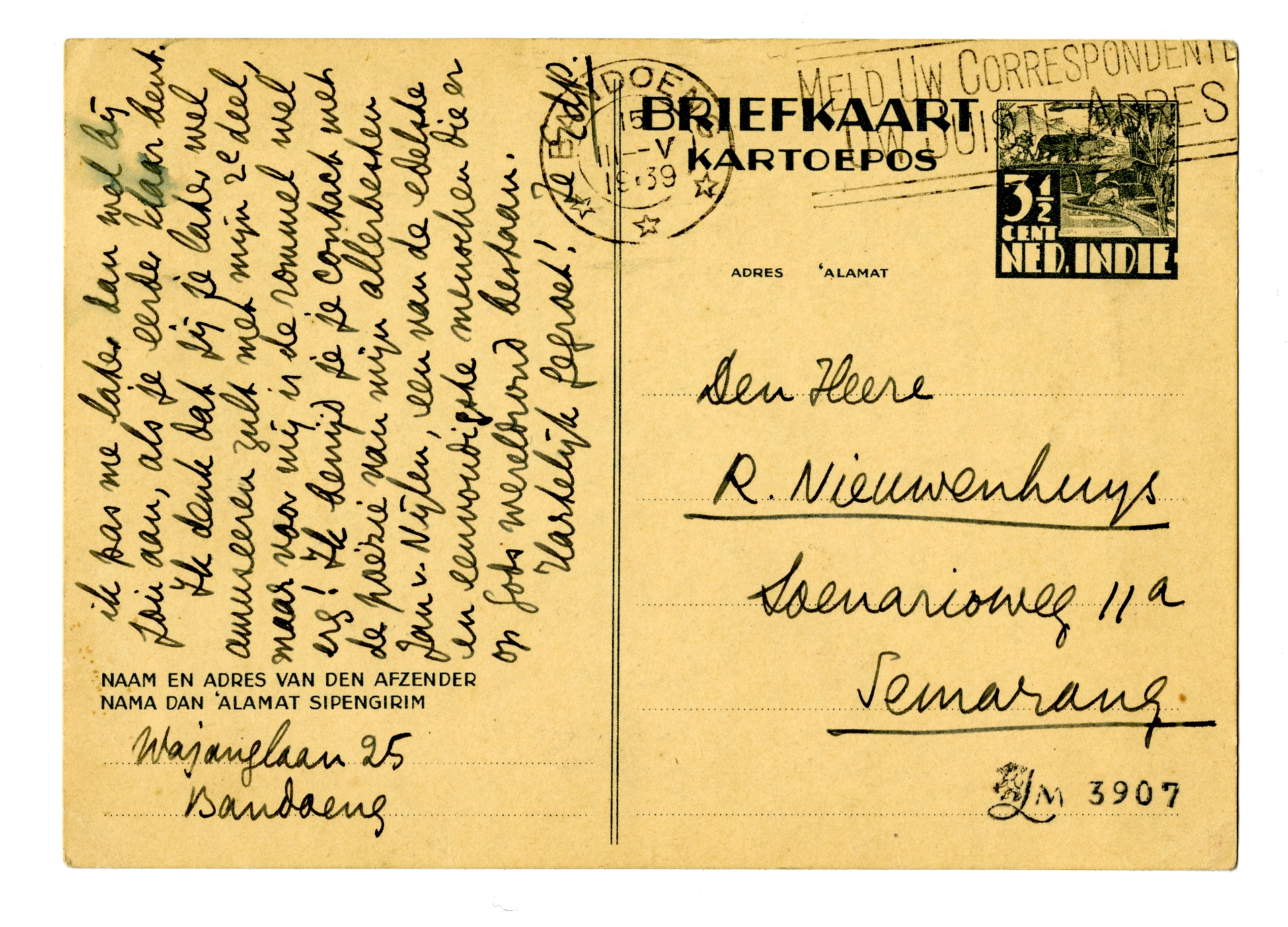 Ik werk nu met kracht aan het 2e deel Ind. Belletrie. De stof is zoo overvloedig dat ik, om compleet te zijn, ± 500 blzn. zou moeten vullen. Helaas - of misschien goddank - mag ik er maar 320 vullen. Het is nu een heel gelees, getik, nagelees, geschift, enz. Ik hoop dat ik er zelf niet van schift, maar hoe dan ook, deze schoone maand van Mei wil ik er doorheen (dwz. de navijlerij niet meegerekend).