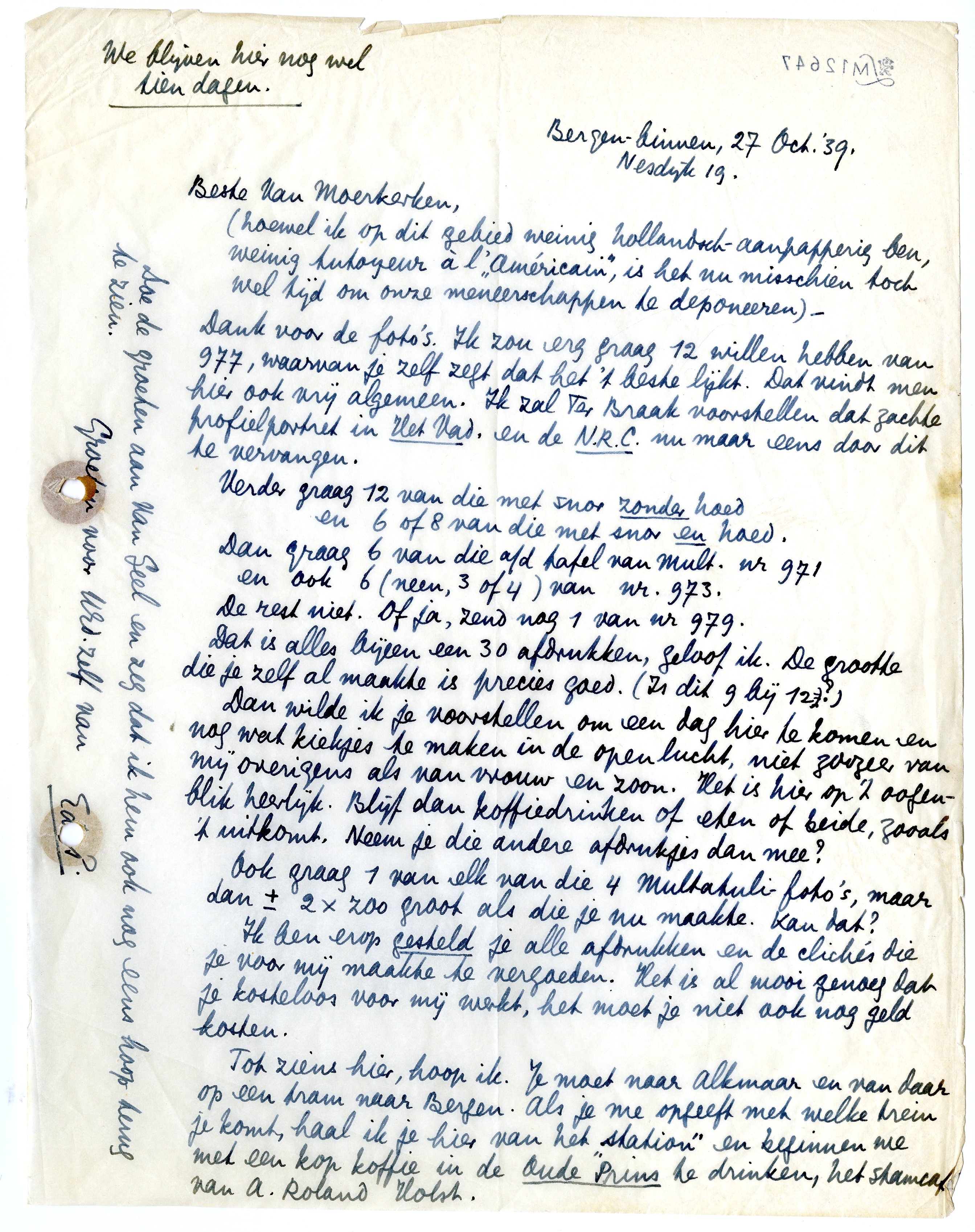 Dank voor de foto's. Ik zou erg graag 12 willen hebben van 977,6286 waarvan je zelf zegt dat het 't beste lijkt. Dat vindt men hier ook vrij algemeen. Ik zal Ter Braak voorstellen dat zachte profielportret6287 in Het Vad. en de N.R.C. nu maar eens door dit te vervangen.