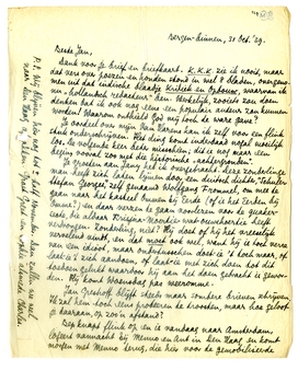Je groeten aan Jany heb ik overgebracht. Deze zonderlinge man heeft zich laten lijmen door een duitsch dichter, ‘Schuier Stefan Georges’, zelf genaamd Wolfgang Frommel,6337 om mee te gaan naar het kasteel Ommen bij Eerde (of is het Eerden bij Omme?) en daar verzen te gaan voorlezen voor de quakersecte, die aldaar Krisjna-Moertie-wat-ouwehoertie heeft verdrongen. Zonderling, niet? Hij doet of hij het vreeselijk vervelend vindt, en dat moet ook wel, want hij is toch verre van een idioot, maar ondertusschen doet-ie 't toch maar, of laat-ie 't zich aandoen, of laat-ie met zich doen tot dit toedoen gelukt waardoor hij aan het doen gebracht is geworden. Hij komt Woensdag pas weeromme.