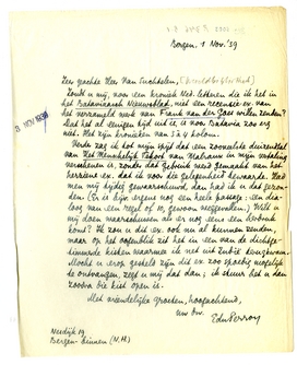 Zoudt u mij, voor een kroniek Ned. letteren die ik heb in het Bataviaasch Nieuwsblad, niet een recensie-ex. van het verzameld werk van Frank van der Goes willen zenden? Dat het al eenigen tijd uit is, is voor Batavia zoo erg niet. Het zijn kronieken van 3 à 4 kolom.6345