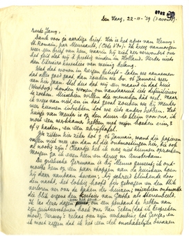 Beschouw dit dan ook maar als vier velletjes praterij van mij met jou, omdat ik over Den Haag eig. niets heb te vertellen. Het is wel geschikt ook, in dit burgerlijk appartementje, maar Bergen is 1000 maal heerlijker. Als er dus niet een germaansche overstrooming tusschen komt of een mooie ‘baan’ voor mij hier, of iets in een van deze twee richtingen, dan zie je ons vàst terug tegen 16 Januari.