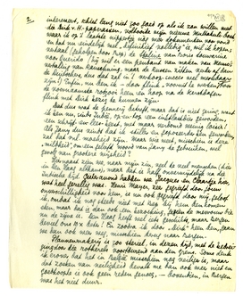 Hiernaast zien we, naar mijn zin, veel te veel menschen (hier in Den Haag althans), maar dat is half onvermijdelijk na die Indische tijd. Gisteravond hadden we Jacques en Claartje hier, wat heel gezellig was. Henri Mayer, zeer gegriefd door jouw onverschilligheid voor hem, is nu ook gegriefd door mij, geloof ik, omdat ik nog steeds niet met Bep bij hem ben komen eten, maar dat is dan ook een bezoeking, gezien de mevrouw die nu de zijne is. Den Haag heeft wel iets geschikts, maar Bergen beviel ons 10 × beter! En zoodra ik door ‘Dirk’ heen ben, gaan we dan ook weer weg, misschien terug naar Bergen.