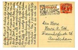 In haast, en onder de drukte door, antw. op uw brief 1o Ik ben Zaterdag bij dr. Stapel geweest, die meent dat hij wel wat van u plaatsen kan, als het goed is. Ik wacht dus gewoon af. 2o. Over Dirk v.H. zal ik u complete lijsten opgeven, ook van de gedrukte literatuur, zoodra u daaraan toe bent. Dat geeft u mij dus nog op. 3o. Ik lees met klimmende walging het schrijfsel van het wijf Leggeloo. 4o. Natuurlijk kunt u gerust een lezing6541 over me houden, als dat de huisvrouwen niet te veel dérangeert (het gros is Leggeloo-achtig, dat beseft u zelf). Maar ik kan helaas geen boeken sturen, omdat ik mijn boeken nog steeds niet heb uitgepakt; de heele boel zit in dichtgetimmerde kisten. Nu weet ik er iets op: in Amsterdam, Prinsengracht 838III, woont een jong dichter, Pierre H. Dubois, die zich juist bezig houdt met een ‘studie’ over me en die vmdl. ongeveer alles van me bezit. Gaat u eens met hem praten, hij kan u alle aanwijzingen geven, denk ik, en misschien ook wel voor een tijdje de noodige boeken afstaan. U zou hem kunnen schrijven en deze briefk. insluiten ‘ter recommandatie’. Voor 't gevraagde lijstje met data moet ik iets meer tijd hebben; dat krijgt u dus eerstdaags nog. Beste groeten, uw dw.