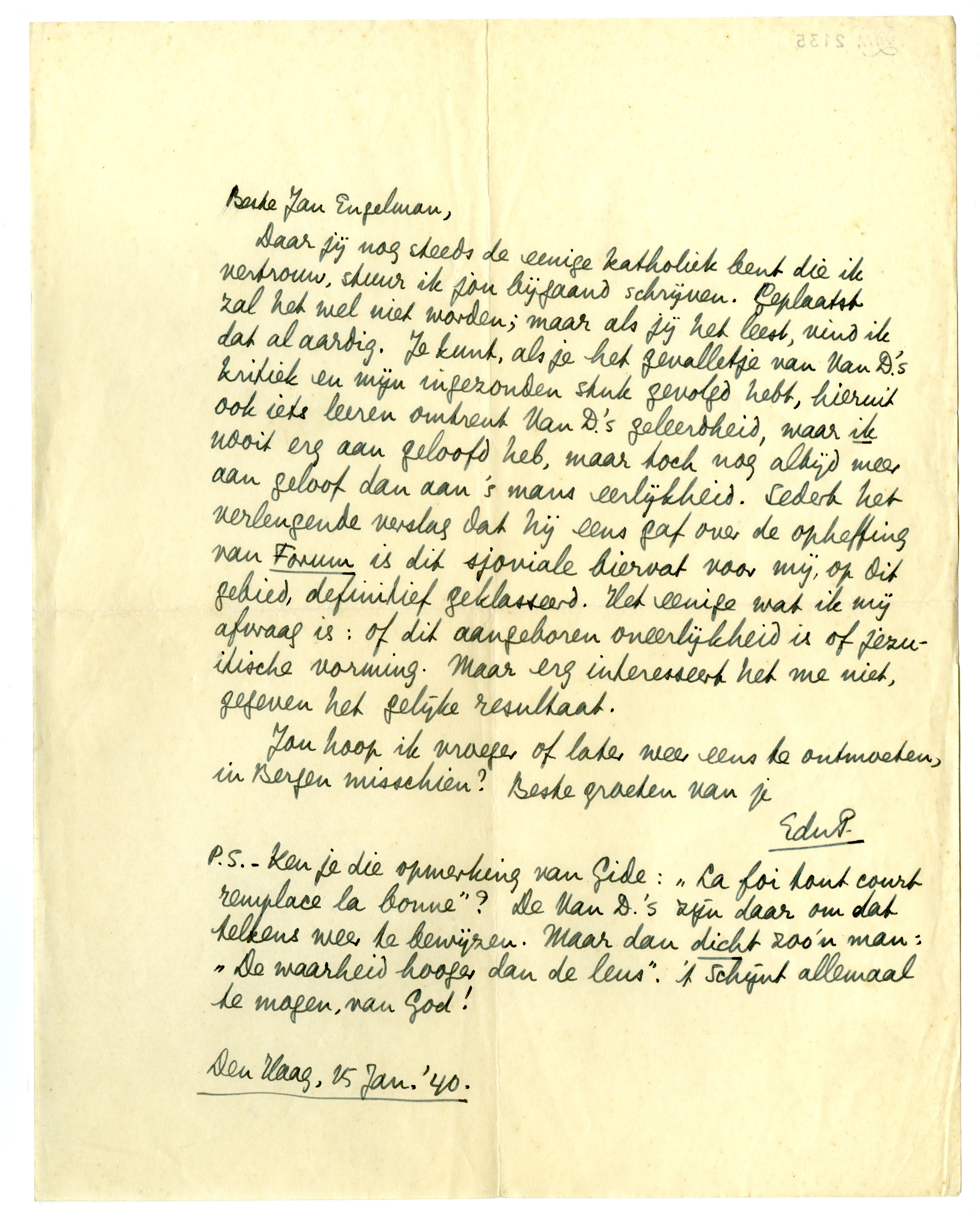 Den Haag, 15 Jan. '40.