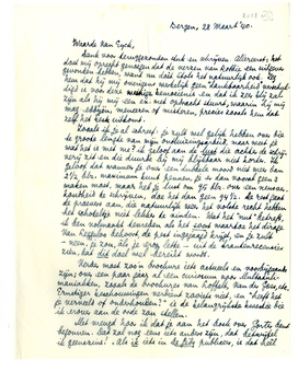Dit mopje geloosd hebbende, wensch ik niet van het begonnen Gorter-boek af te stappen, zonder je te zeggen dat het mij hartelijk welkom zou zijn, zoodat je aan mij nu ook al verplicht bent het af te maken. Laat je niet door vervolledigings- en vervolmakings-cultus stuwen naar mis- of ongeboorte en denk nu al aan de opdracht die je er voor mij in schrijven zal. Doe er een paar mooie portretten van Gorter in en vergeet niet te vertellen dat hij Multatuli zoo hoog schatte, tot zeer laat in zijn leven en niet alleen als student.