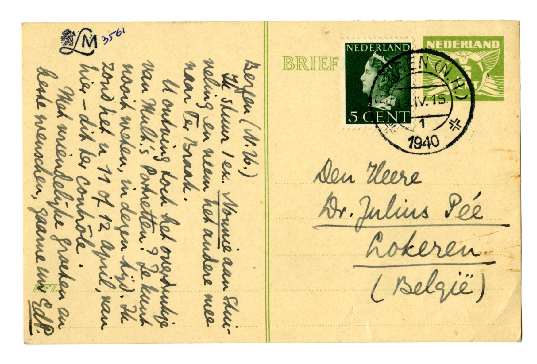 Adres van Ter Braak is: Kraaienlaan 36, Den Haag. Dat is ook mijn adres van 20 dezer tot 4 of 5 Mei a.s. Vanaf 1 Mei is mijn vast adres echter: Doorntjes 32, Bergen (N.H.)