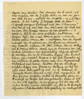 Wat ik denk van Helman? Sympathiek, maar zwak; en op het oogenblik overschat. Ik weet niet of we iets van Helman verwachten mogen: als die ‘zwakheid’ aan zijn jeugd toe te schrijven is, dan ja; moeten we daarentegen aannemen dat het zijn katholieke milieu is dat hem zoo beperkt, en blijft hij daarin, dan, zonder twijfel, neen. Kent u één groote katholieke figuur in de Nederl. letteren; behalve dan Vondel? Gezelle - maar die is eigenlijk zeer on-Nederlandsch. Het is waar dat Helman een West-Indiër is. Toch vrees ik voor zijn ontwikkeling, als hij een mannetje van de ‘Gemeenschap’ blijft, zoo in de schaduw van de Dom van Utrecht.
