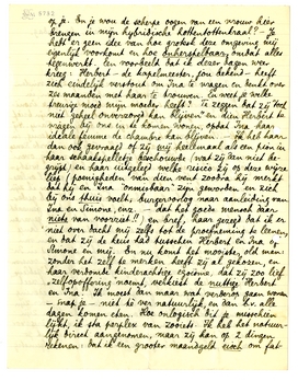 Nu, ik sluit voor vandaag met deze zure historie; - ik moet n.l. naar Brussel. Je vergeeft me wel ‘de 2 druppels alsem in je nieuwe geluk’ - dat er niet door geëntameerd zal worden, en je haalt er wel de - hm - menschkundige les uit die deze historie bevat. Ik geloof dat als ik niet dat andere anker had, ik na de installatie moeder-Ina-Herbert meteen naar Afghanistan7043 zou gaan, met het gevoel alle verantwoordelijkheid aan de nieuwe verzorgers te hebben overgegeven. Maar ook zóó ben ik niet vrij. Ik heb n.l. het geld niet om te reizen èn mijn vrouw een maandgeld te geven, waarvoor zij in haar familie gelukkig kon zijn, bijv. Ik weet niet hoe ik hier uit kom, maar ik denk er om zoo te zeggen dag en nacht aan. En de ster die jij plotseling ontmoette, ontbreekt mij!