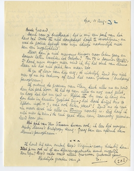 P.S.7187 Vanmorgen kwam je nieuwe brief (Bep is nog steeds aan het uitbroeden van een titel - ha! ze heeft hem!) - Op je brief valt niet veel te antwoorden; nu je 76 blzn. kon krijgen inpl. van 64, of zelfs maar 68, is alles ‘perfect’ inderdaad! En leve Brulez7188 (Hollandsche uitspraak).