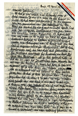 Ik heb je nog steeds niet bedankt voor je brief, waarin je me o.a. wees op die krant in Indië. Ik heb daar geïnformeerd, en een kennis van me, journalist aan ‘Het Vaderland’ in Den Haag,7478 die iemand bij die krant in Indië kende, heeft zelfs (per vliegpost) gesolliciteerd voor me, maar alle berichten waren ongunstig: de krant zelf was nog maar in de maak en werd al door faillissement bedreigd, ze hadden allerminst iemand noodig, enz. Bovendien was ik bezig met een boek, dat ik ongeveer als mijn ‘levenswerk’ tot op heden beschouwen mag, en dat heel dik geworden is. Het verschijnt eerstdaags bij Querido en heet ‘Het Land van Herkomst’ - als je het gelezen hebt (ik heb een ex. naar het Genootschap laten sturen, dat eig. voor jou bestemd is, maar dat kon ik zóó niet opgeven) zal je alles beter en ‘dieper’ weten wat er allemaal met me gebeurd is, deze laatste jaren, dan ik het je hier schrijven kan. Practisch gesproken heb ik, deze 2½ jaar na mijn moeders dood, geleefd van dat boek, + een paar vertalingen, + brieven voor ‘Het Vaderland’ die ik met mijn vrouw schreef. Alles bijeen voor een miniem loon; maar mijn vrouw had een fl. 50. in de maand van haarzelf, en wij hebben geleefd op één kamer (z.g. studio), zoodat het wel ‘ging’. Daarna is mijn schoonzuster in Holland gekomen en heeft - voorloopig althans - de opvoeding van mijn zoon Gille (nu 9 jaar en in Brussel op kostschool) voor haar rekening genomen. En daarna is mijn schoonvader gestorven, zoodat mijn vrouw een klein erfenisje kreeg, dat heel wankel staat, maar ons een paar jaar veroorloven kan wat menschwaardiger te leven. Van deze verbetering in onze omstandigheden heeft mijn vrouw geprofiteerd om zelf moeder te worden: zij verlangde altijd een kind en het was werkelijk ‘nu of nooit’. Dit kind is nu een week geleden hier geboren: het is een jongetje en het heet Alain. (Terwijl ik je dit schrijf liggen moeder en kind nog in de kliniek.) Wij gaan door met ‘brieven’ schrijven voor de krant, ik ben alweer bezig aan een nieuwe vertaling7479 (fl. 150. voor 250 blzn., dus allesbehalve goed betaald, maar de boeken die ik tot dusver vertaald heb zijn tenminste nog geen snert en ook dat troost); en daarna heb ik weer een boek in het hoofd dat op papier moet; en dààrna... Als de nieuwe oorlog er dan nog niet is, zoodat wij nog niet door gassen of bommen of microben opgeruimd zijn, en als ons geld dan niet totaal op is, kunnen we verder kijken. Ik heb perzisch geleerd, en leer het nog, met de bedoeling een paar jaar in Teheran en Ispahan te zitten, daarvandaan brieven te schrijven of er een boek te maken dat ‘gaan’ kan, enz. Maar alles wat je op het oogenblik bedenken kan komt neer op niets, d.w.z. bestaat alleen zoolang het niet door één stoot van elders kaf op de wind geworden is. Je zou je 5 jaar in kunnen spannen met een bewust doel voor oogen, en dan je inspanning en jezelf zien weg blazen alsof er nooit sprake van was geweest. Aan de andere kant geeft de geboorte van het nieuwe kind mij een nieuw besef van verantwoordelijkheid: je moet dan toch doen wat je kàn, en doen alsof de wegblazerij definitief zou kunnen uitblijven. Deze brief gaat een beetje uit van deze gedachtengang. Je schreef me laatst dat het baantje van assistent op de bibliotheek nog maar fl. 150. opbracht, en wschl. opgedoekt ging worden. Ik kan het mij niet uit het hoofd zetten dat ik mij, als ik eenmaal in Indië terug ben, daar toch altijd beter zal redden dan hier, en fl. 150. 's maands vast zou een ongehoorde rust voor me zijn. Kan je me dus schrijven of die post nog bestaat, vacant is of vacant zou kunnen komen, of je er wat voor zou voelen mij (wijzer, ouder, niet luier toch) weer als medewerker te hebben? Zoo niet, zie je geen andere mogelijkheden - bv. bij de oudheidkundige dienst? Al zou ik maar vooreerst ergens ‘ondergebracht’ worden, dan zou ik toch al geholpen zijn. Mijn vrouw en ik kunnen dan verder toch altijd wat bij zien te verdienen, hetzij in Holland - ‘brieven’ of andere artikelen - hetzij in Indië zelf. Het idee dat er - ingeval van werkelijke armoede (la misère pure et simple!) - in Indië althans geen winter is, geeft op zichzelf al een steun; en dan, het is daar tenslotte toch mijn land, ik kan daar nuttiger zijn, daar méér doen wat mijzelf en anderen interesseert, dan in Holland. Bv. ik kan me voorstellen dat ik het nog eens probeer om eindelijk de ‘groote’ indische roman te maken (als ik 45, 50 zal zijn?), maar de hollandsche roman is mijn zaak niet, en bovendien heeft Couperus die al geschreven, zooals Van Schendel het hollandsche groote verhaal op zijn actief heeft (Boeken der Kleine Zielen; Fregatschip Johanna Maria en De Waterman). Ook voor de hindoe-javaansche kunst heb ik altijd erg veel gevoeld, zooals je weet. Kortom, ik wou je vragen om voor me uit te zien, maar dan in alle ernst, d.w.z. om met het oog op de komende moeilijkheden - die onontkoombaar zijn - nu al het noodige te doen voor een eventueele terugkomst van mij in Indië. Mijn boek heeft niets om het ‘populair’ te maken, het is van a tot z op de ‘happy few’ berekend, maar je kunt nooit weten, misschien heeft het tòch een grootere weerklank dan mijn uitgever en ik nu aannemen, en dit soort reputatie kan natuurlijk ook altijd helpen. Maar versta mij goed: ik heb niet de minste bedoeling om den grooten auteur in Indië te gaan uithangen (lezingen, enz.) - ik heb daarvoor èn te veel trots èn te weinig theater in me. Mijn ideaal zou zijn: een rustig werk, met iemand van jouw soort, waarop ik door-en-door vertrouwen kan als op een honnête homme, buiten allerlei ‘gedoe’, dat bij mij toch altijd op onaangename reacties uitloopt, - en voor mijzelf, daarnaast, met de grootst mogelijke moreele vrijheid te kunnen schrijven. Mijn vrouw, die vroeger bezwaren had tegen Indië, is nu - nu ik haar verzekerd heb dat men ook dààr curieuze en aardige menschen ontmoeten kan - en vooral na haar vaders dood, geheel bere
