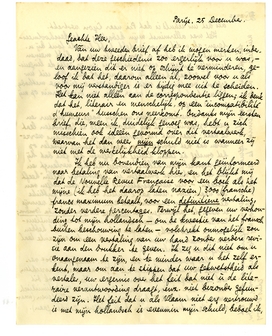 Ik heb nu bovendien van mijn kant geïnformeerd naar betaling van vertaalwerk hier, en het blijkt mij dat de Nouvelle Revue Française voor een boek als het mijne (ik heb het daarop laten nazien) 3000 (fransche) francs maximum betaalt, voor een definitieve vertaling, zonder verdere percentages. Terwijl het, gegeven uw verhouding tot mijn hollandsch7563 - om de kwestie van het fransch buiten beschouwing te laten - volstrekt onmogelijk zou zijn om een vertaling van uw hand zonder verdere revisie aan den drukker te geven. Ik zeg u dit niet om u onaangenaam te zijn, en te minder waar u het zelf erkent, maar om aan te stippen dat uw gekwetstheid als vertaler, uw ergernis over het feit dat niet u de literaire verantwoording draagt, enz. niet bizonder gefundeerd zijn.7564 Het feit dat u als Vlaam niet erg vertrouwd is met mijn hollandsch is evenmin mijn schuld, bedoel ik, als het uw schuld is dat Pia naar Lyon vertrekt.