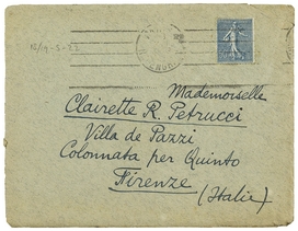 Le courrier de midi est arrivé sans apporter rien de Quinto. J'expédierai donc cette lettre et vous écrirez bientôt une autre. Je vous envoie ci-joint les choses annoncées. La reproduction du portrait de Jeffay est mauvaise; comme il était en couleurs la photo a manqué l'impression que donne l'original. Je vous ai envoyé hier le dernier Crapouillot et un numéro de L'Illustration que je croyais fait pour vous. Merci pour les photos de Alinari; l'Angelico est très bien ainsi, le saint est épatant et vous - si je ne craignais pas de commettre un plagiat, je dirai que vous etes un ange! Si vous m'envoyez bientôt une épreuve de la plaque que vous avez fait faire, je vous dessinerai des ailes! Et n'oubliez pas les deux films que je veux faire renforcer, pour être gentille!