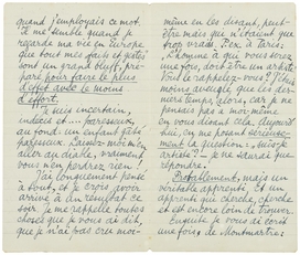 J'ai longtemps pensé à tout, et je crois avoir arrivé à un résultat ce soir. Je me rappelle toutes choses que je vous ai dit, que je n'ai pas cru moi-même en les disant, peut-être mais qui n'étaient que trop vraies. P.ex. à Paris: ‘L'homme à qui vous serez une fois, doit être un artiste.’ Vous le rappelez-vous? J'étais moins aveuglé que les derniers temps, alors, car je ne pensais pas à moi-même en vous disant cela. Aujourd'hui, en me posant sérieusement la question: ‘suis-je artiste?’ - je ne saurai que répondre.