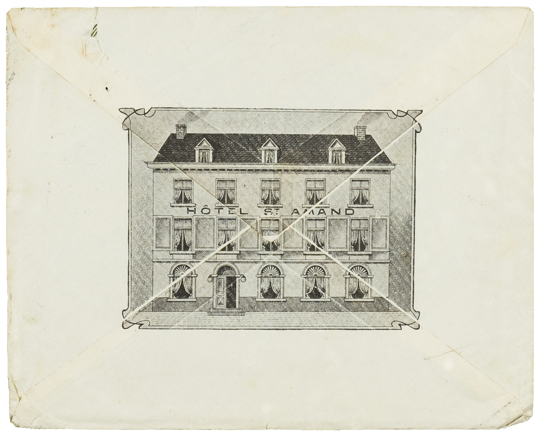 Maintenant, voici mon adresse: Pension St. Christophe, Nieuwe Ghentweg 78, Brugge - ou ‘Bruges’ si vous voulez, étant plûtot fransquillon(ne). Ce n'est pas que j'y suis logé, car pour le moment nous avons trouvé une chambre dans un petit hôtel tout près d'ici qui est protégé par Saint Amand. Nous avons fait une promenade par toute la ville, derrière un homme à camion, avant de trouver quelque chose. Le pension Verriest nous demanda 22 francs par jours et par personne, ce qui faisait pâlir Jeffay. La plénipotentiaire de ‘St. Christophe’ était occupée de faire une visite et personne autre ne pouvait régler l'affaire. Une dame aimable et sans dents nous affirma qu'elle avait une chambre pour nous au pension ‘Notre-Dame’, qui se trouvait un peu plus loin que sa propre maison où se trouvait la dame et l'enseigne. Mais arrivés au ‘véritable’ pension nous trouvions une autre dame - avec une double rangée de dents, celle-ci! - qui nous affirma, et beaucoup plus décidée que la précédente, qu'elle n'avait aucune place pour nous. Nous regagnâmes (voilà le célèbre passé défini) la rue et l'homme au camion. Et nous voilà de nouveau sur la piste de guerre. Notre allié commençait à perdre sa bonne humeur et demandait ‘of ‘t nou nog verder rondgoât’.
